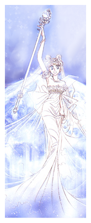 The Beneficent ruler of Crystal Tokyo, Neo Queen Serenity ascended to the throne at the age of 20 and became the ruler of Earth. The magical silver crystal she carried gave humanity eternal life and freed the world from disease and starvation; the new age of peace and prosperity soon began to be known as a utopia, and many began to worship the Queen as a goddess.